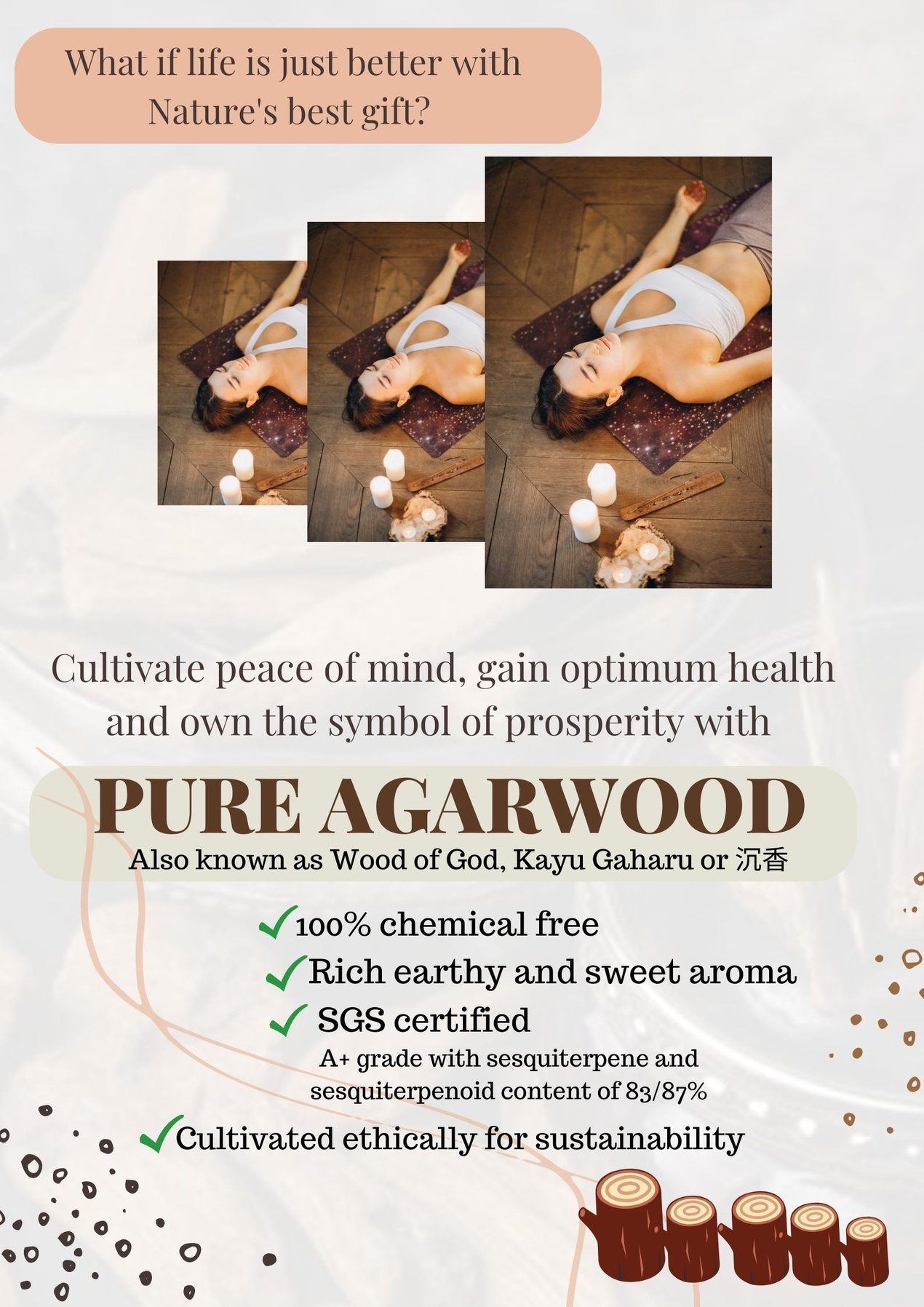 Agarwood oil improves skin hydration, combats bacterial growth, slows down aging, protects against UV radiation and promotes collagen synthesis, amongst others.